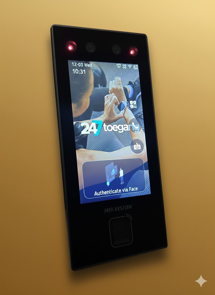 De 247 Scantechniek is de luxe 4,5 inch terminal die de toegangscontrole regelt, leden informeert en uw branding toont.